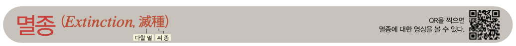 멸종은 어떤 생물 종이 지구상에서 더는 살아 있는 개체가 확인되지 않고 사라지는 현상을 말해요. 마지막 개체가 죽은 순간을 멸종의 시점으로 보지요.
