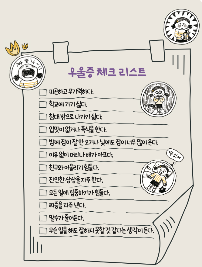 청소년 시기에는 사춘기도 와서 우울증을 알아차리기 더욱 힘들어요. 연세대학교 소아정신과 이정한 교수는 “사춘기 때도 짜증이 많아지지만, 우울증만큼 일상생활에 큰 지장이 생기지는 않는다”고 말했어요.
