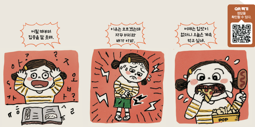 요즘 자꾸 배가 아프고 머리도 지끈지끈해. 학교도 가기 싫어. 일기장에는 우울한 말들만 늘어나고 있어. 일기장에 쓴 표현을 보니 몸과 마음에 무슨 일이 일어난 게 틀림없어.