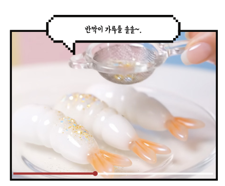 최근 청각과 시각을 동시에 자극하는 ASMR 영상을 AI로 만드는 사람들이 늘고 있어요. 이 영상은 AI로 빛나는 새우튀김을 만드는 과정을 보여줘요. 유리와 반짝이 가루로 새우튀김을 만드는 과정을 눈과 귀로 즐겨 보세요.