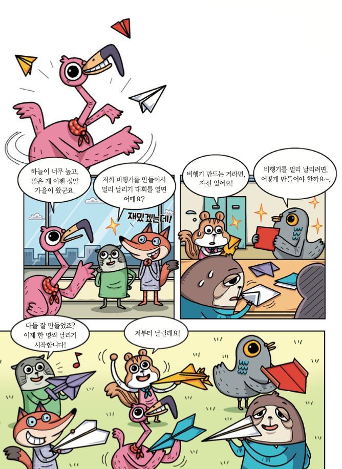 <어린이과학동아> 기자들이 종이비행기 날리기 대회를 열었어요. 종이비행기가 훨훨 날아가는 순간, 이를 방해하는 작전이 펼쳐졌어요. 방해하는 작전을 뚫고, 승리한 사람은 누구일까요?