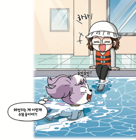 ‘사람이었을 때는 수영을 전혀 못 했는데 개가 되니 개헤엄이 무척 쉽잖아!’
