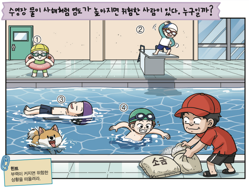그런데 수영장 물맛이 너무 짰다. 옆을 둘러보니 수영장 관리인이 수영장 물에 소금을 풀고 있었다.