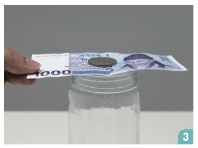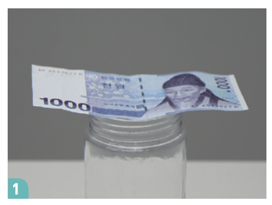이때 물병이 쓰러지면 안 돼요. 어떻게 해야 지폐만 빼낼 수 있을까요?