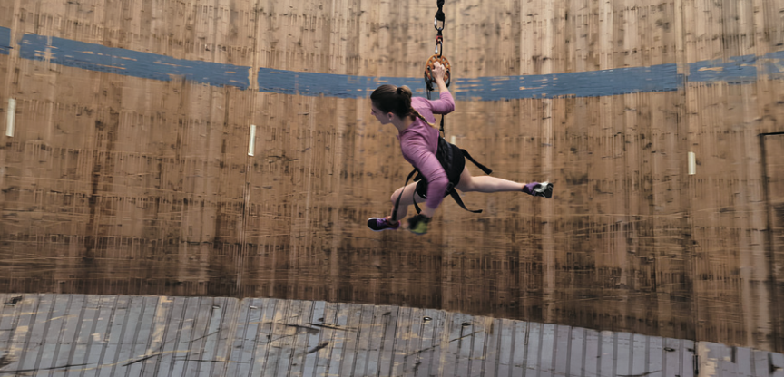 연구팀은 이 운동법이 실제로 가능한지 실험했습니다. 천장에 매달린 줄에 두 명의 참가자를 연결하자 두 사람의 몸이 공중에 떠 마치 우주 같은 환경이 만들어졌어요. 실험 결과, 지름 9.7m인 원통 안쪽 벽에서 참가자들은 한 바퀴인 약 29.7m를 달리는 데 성공했답니다.