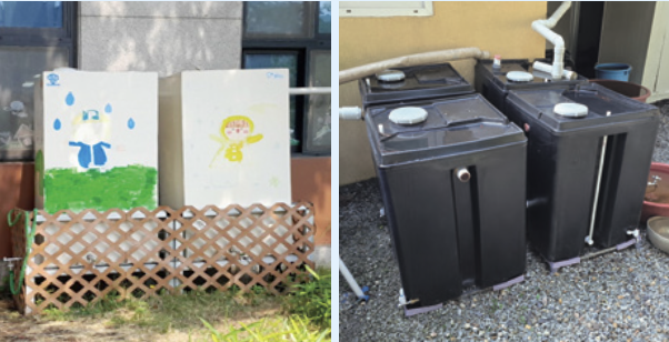 건물 지붕에 떨어진 빗물을 모을 수도 있어요. 빗물이 빠져나가는 배수로에 빗물 저금통을 설치해서 빗물이 하수구로 빠져나가기 전에 모을 수 있지요. 우리나라에는 서울 광진구의 한 아파트 단지에 3000t만큼 빗물을 저장하는 시설이 있어요. 한무영 교수는 경기 의왕 백운호수초등학교와 서울 보덕사에도 빗물 저금통을 설치했습니다. 한무영 교수는 “물모이와 빗물 저금통은 댐에 비해 저장하는 물이 적지만, 돈이 적게 필요하다”고 말했어요.