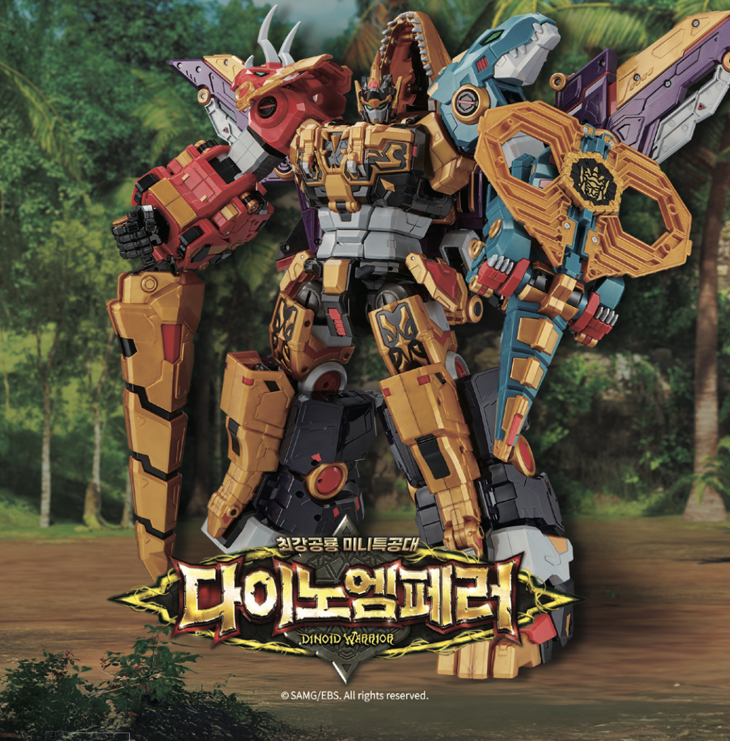 인기 애니메이션 <최강공룡 미니특공대> 속 전설의 고대 다이노이드, 다이노 엠페러가 완구로 새롭게 태어났어요. 다섯 공룡이 합쳐진 거대한 로봇의 비밀을 알아볼까요?