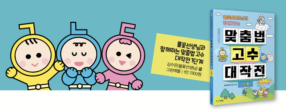혹시 맞춤법이 너무 어려운가요? 초등학교 선생님인 김수은 선생님(풀꽃선생님)이 맞춤법을 자연스럽게 익힐 수 있도록 ‘맞춤법 고수 대작전’ 책을 펴냈답니다. 풀꽃선생님이 알려 주는 맞춤법으로,