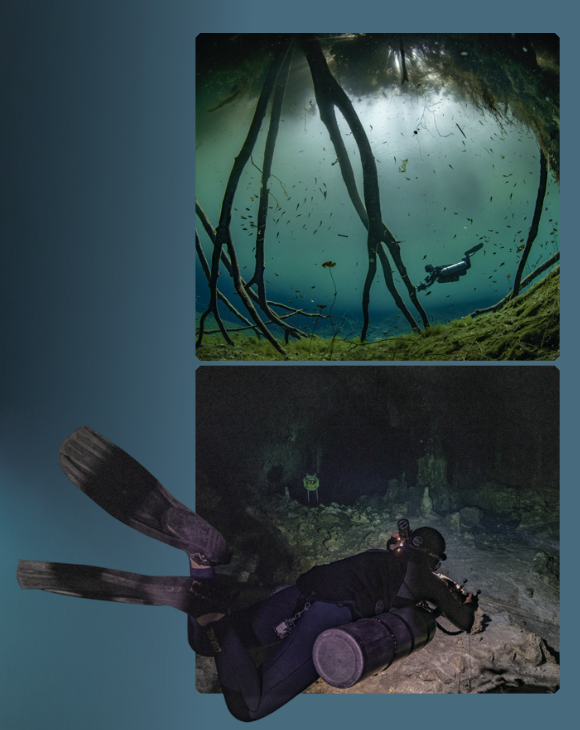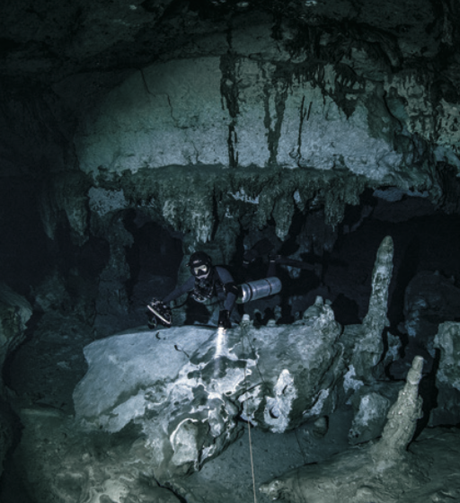 사람들에게 유명한 수중 동굴은 대부분 멕시코 유카탄반도에 있어요. 이 지역은 주로 탄산칼슘 성분인 석회암으로 이뤄졌어요. 유카탄반도의 수중 동굴은 약 2만 년 전, 지금보다 해수면이 120m 정도 낮았던 빙하기에 빗물이 석회암 지면을 뚫고 들어가 생겼어요. 멕시코에서는 이를, 우물터를 의미하는 ‘세노테’라고 불러요. 빙하기가 끝나고 해수면이 상승하면서 세노테는 물에 잠겼어요.