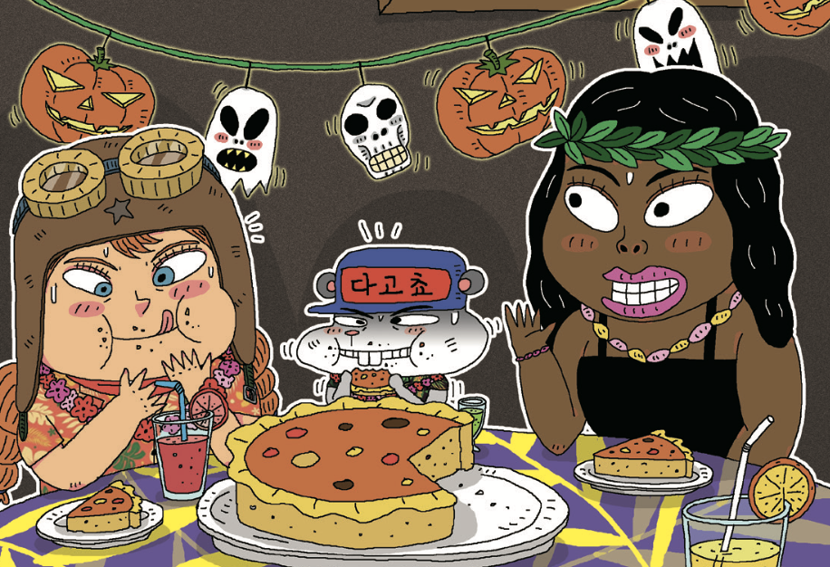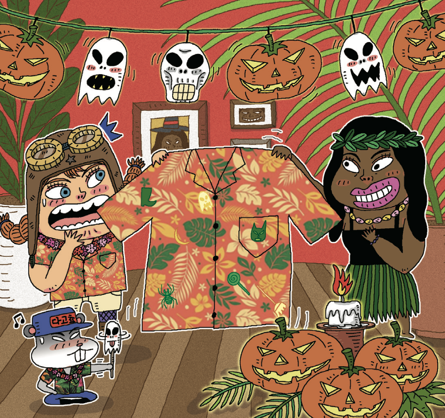 “미국 사람들은 핼러윈에 진심이거든! 네 셔츠도 핼러윈 특별판인데, 몰랐니?”