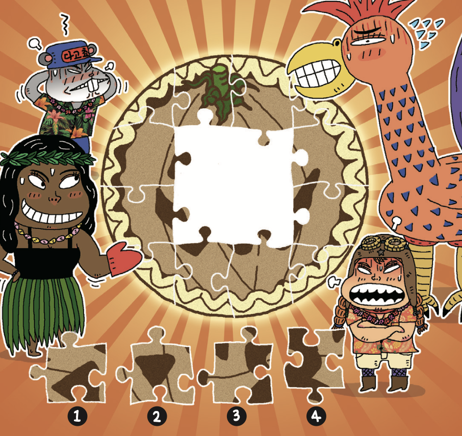 불사조가 뱉은 네 개의 조각이 각각 어느 자리에 들어가야 하는지 맞혀라.