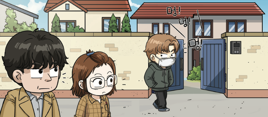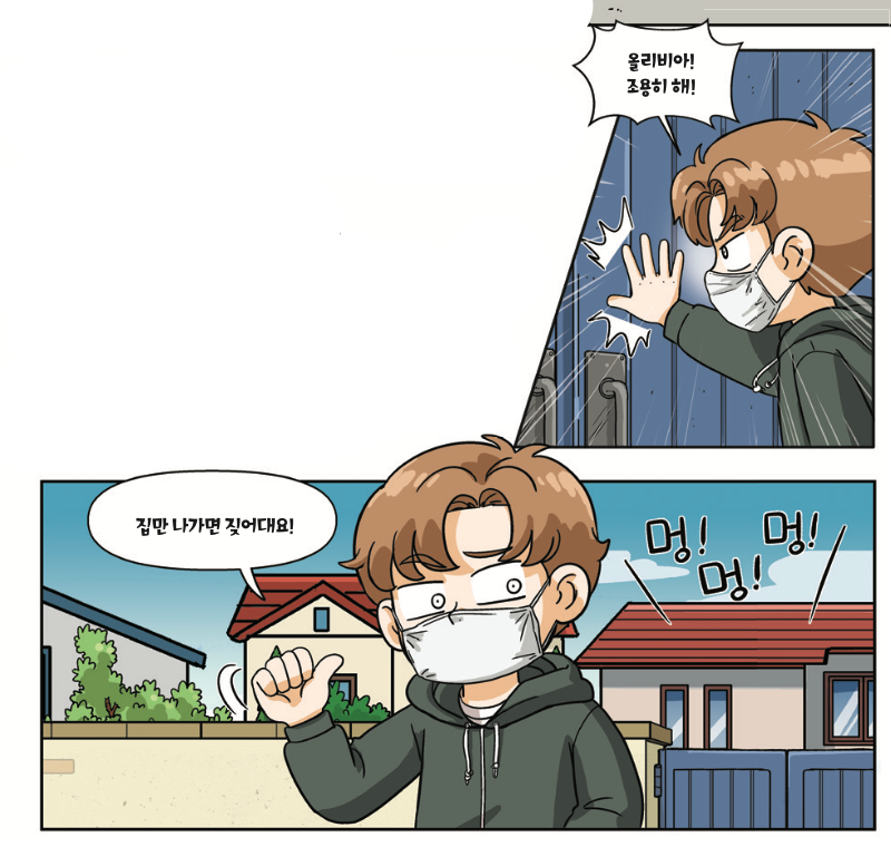 이 프로를 따라 집 밖으로 나가니 대문이 열려 있는 옆집에서 개 짖는 소리가 요란하게 났다. 마스크를 쓴 남자가 옆집 앞에서 서성이고 있었다. 우리를 본 남자는 급히 옆집 대문을 닫으며 안에 대고 외쳤다.