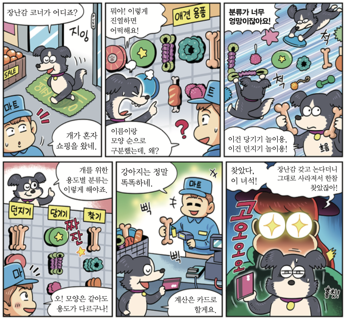 10월 6일 헝가리 외트뵈시로란드대학교 클라우디아 푸가차 연구원팀은 개가 기능에 따라 물건을 분류한다고 밝혔어요. 연구팀은 개 10마리에게 두 가지 용도의 장난감을 가르쳤어요. 잡아당기는 장난감 4개와 던지면 물어오는 장난감 4개였지요. 학습을 마친 뒤 반려인이 8개의 장난감을 무작위로 두고 개에 ‘당기기!’와 ‘물어오기!’를 말했어요. 48번의 시도에서 모든 개가 17번 이상 용도에 맞는 장난감을 가져왔고, 4마리 개는 36번 이상 정답을 맞혔습니다. 연구팀은 “모양이 아닌 기능으로 물건을 분류하는 능력이 동물에게도 있다는 사실을 알 수 있었다”고 밝혔어요.