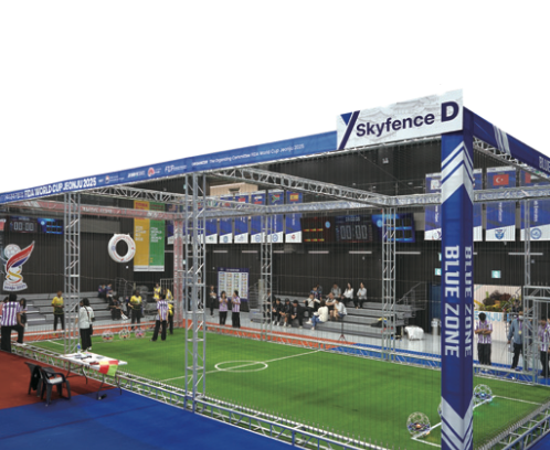 기자는 우리나라를 비롯해 일본, 자메이카, 프랑스 등 여러 나라 선수들이 맞붙는 경기를 관람했어요. 경기 시작을 알리는 신호음이 울리자, 바닥에 있던 드론 볼이 동시에 공중으로 솟아올랐습니다. 양 팀의 드론 볼은 서로 부딪히며 상대의 공격을 막고, 골대를 향해 빠르게 움직였어요. 상대의 방해를 뚫고 드론 볼이 골대를 통과하자, 객석에서는 “와!”하는 함성이 터져 나왔습니다.