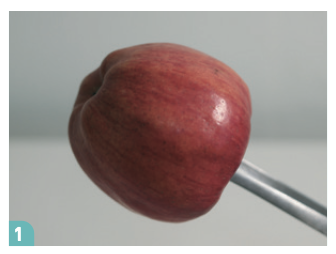 ➊ 붉은빛이 나는 사과에 긴 집게나 포크 등을 꽂아 고정한다.