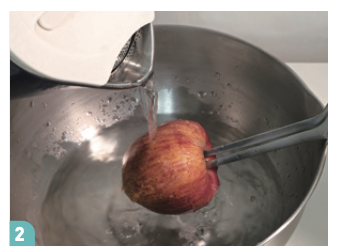 ➋ 사과에 끓는 물을 골고루 붓는다.