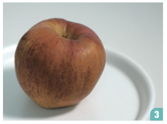 ➌ 사과의 붉은빛이 옅어진 것을 관찰한다.