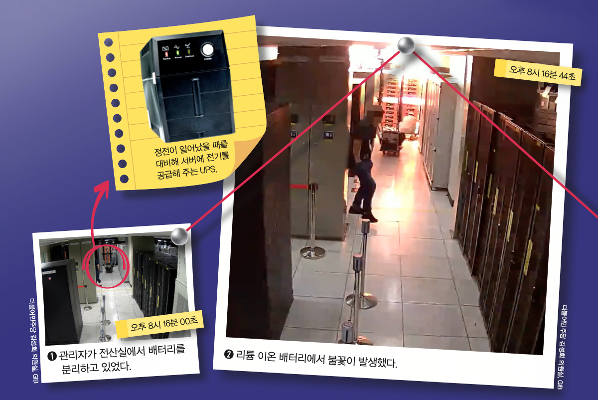 기자는 더불어민주당 김성회 의원실에 연락해 국정자원 전산실에 있는 CCTV 영상을 받았어요. 그리고 배터리 전문가에게 물어보면서 사건이 발생한 과정을 분석해 봤어요. 사건이 발생한 날로 돌아가 볼까요?