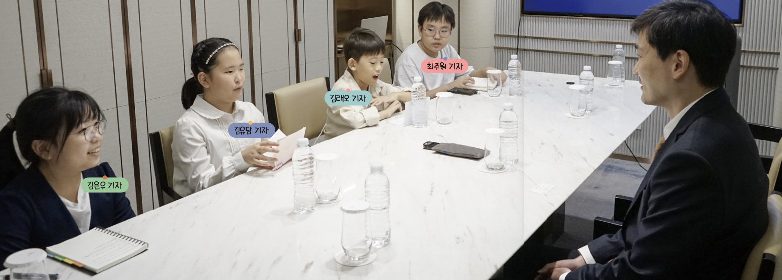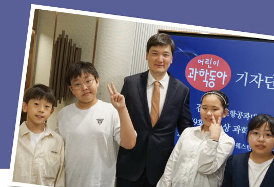 시상식을 약 2시간 앞두고 김범준 교수가 어린이 기자단의 특별 취재에 응했어요. 어린이들과 인터뷰가 처음이라는 김범준 교수에게 거침없는 질문이 이어졌습니다.