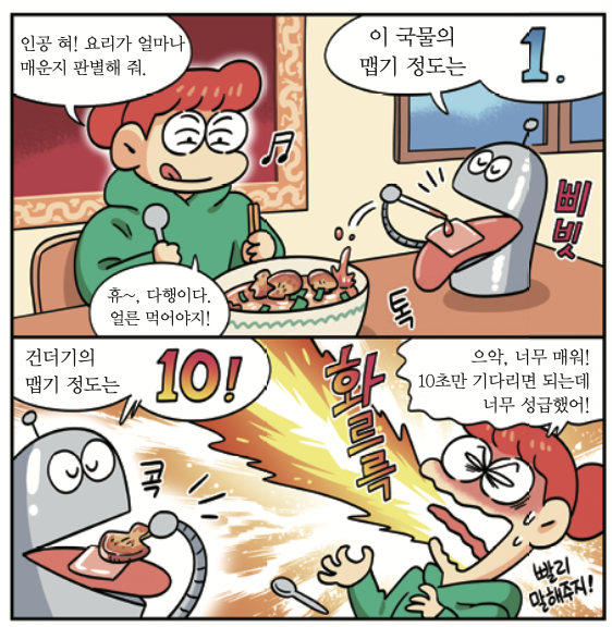 안 매워 보이는데, 실제로 먹었더니 너무 매워서 눈물이 핑 돈 적 있니? 이런 어린이들을 위해 매운맛을 측정하는 인공 혀가 만들어졌어!