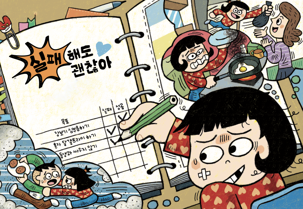 에잇, 오늘도 실패했어. 동생이랑 싸우지 않기로 다짐했는데 먼저 소리를 질렀지 뭐야. 달걀프라이도 불을 조절 못 해서 새까맣게 태웠어. 심부름 빼고는 뭐 하나 제대로 한 게 없는 한 주야. 이렇게 사소한 실패가 많은데, 과연 큰일은 잘할 수 있을까?