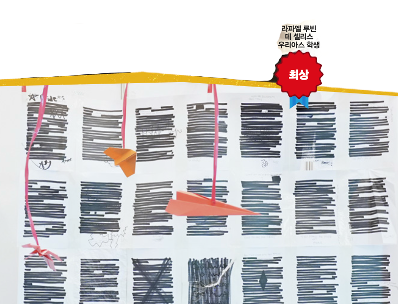 라파엘은 완벽한 대본을 위해 수정을 거듭하다 결국 검은색으로 칠해진 대본을 마주하게 된 사연을 소개했어요. 그러던 중 부끄러운 기억을 종이에 적고 종이비행기를 만들어 하늘로 날렸어요. 이후 자신의 부끄러움을 인정하게 됐지요. 라파엘은 “아무도 새까만 종이를 원하지 않는다”고 말했어요. 이어 “종이를 검게 칠해서 감추지 말라”며 “자랑스러운 것만 공유하면 여러분의 아름다운 부분을 놓친다”는 용기의 말을 전했어요.