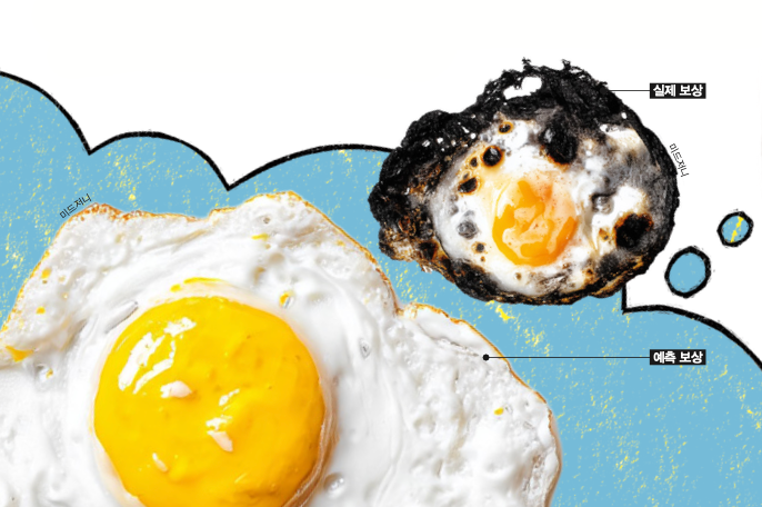 여러분이 생각하는 실패는 무엇인가요? ‘중간에 포기하는 것’, ‘목표를 이루지 못한 것’ 등 각자가 생각하는 실패가 다를 거예요. 뇌과학에서 정의하는 실패는 실제 보상이 예측 보상보다 적은 것을 의미해요. 예를 들어, 달걀프라이를 만들 때 완성된 달걀프라이는 예측 보상, 즉 내가 원하는 결과예요. 반면, 탄 달걀프라이는 실제 보상으로, 실제로 내가 마주한 결과를 의미합니다.