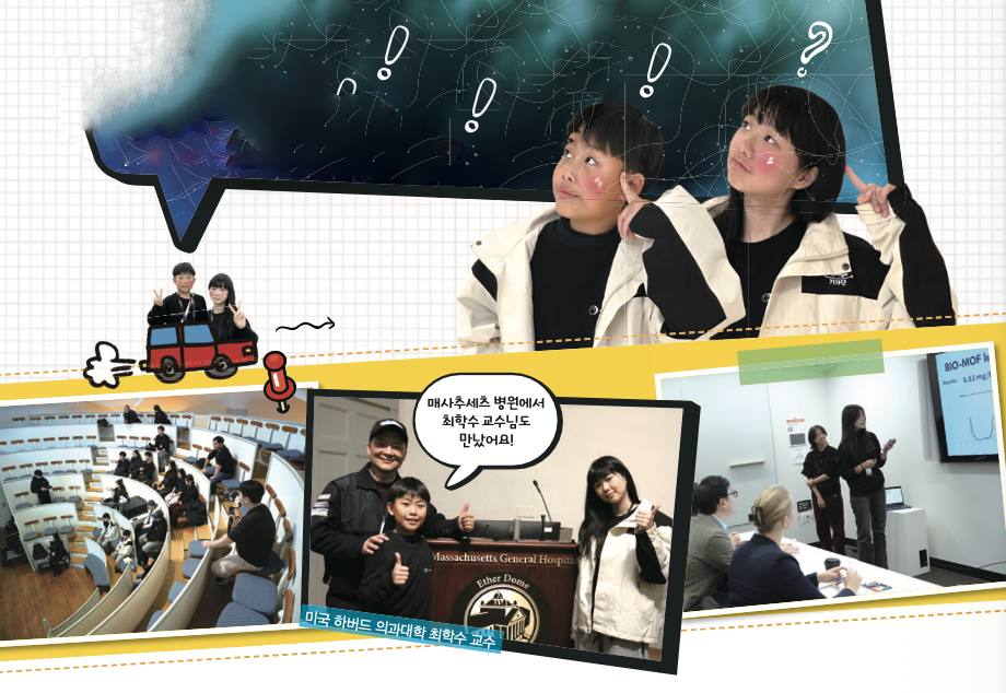 NASA가 있는 미국 휴스턴을 떠나, 보스턴에 도착한 어린이 우주인들과 HIS Youth 팀은 현지 학생들의 안내를 받으며 하버드대학교, 매사추세츠공과대학교(MIT) 캠퍼스를 탐방했어요. 이후 HIS Youth 팀은 MIT 미디어랩에서 진행된 워크숍에 참여해 스테파니 쇼블룸 아우렐리아 인스티튜트(Aurelia Institute) 부사장, MIT 항공우주공학 박사과정 노희건 연구원, MIT 항공우주공학 니콜 리 연구조교에게 각 팀의 연구에 대한 평가와 멘토링을 받았답니다.