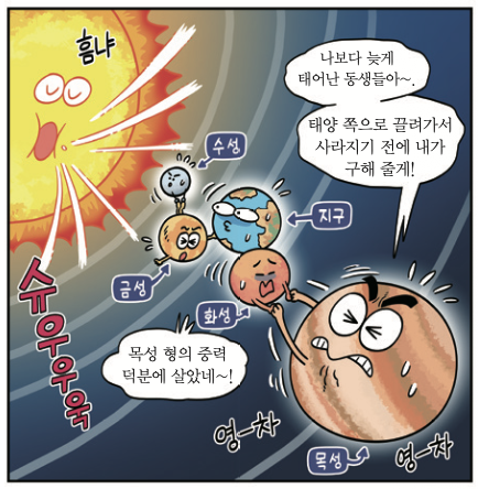 목성은 태양계 행성 중 가장 거대한 행성이야. 이런 목성 덕분에 지구가 지금 자리에 있을 수 있었다는데? 무슨 일이 있었는지 물어보고 왔어!