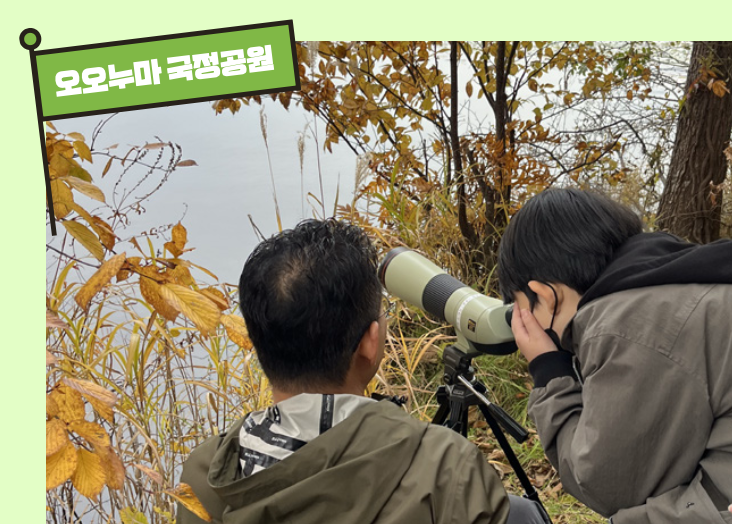 홋카이도에 있는 오오누마 국정공원에도 방문했어요. 이 공원은 홋카이도의 활화산 고마가타케산에서 나온 마그마 등으로 호수, 습지, 숲이 만들어졌어요.