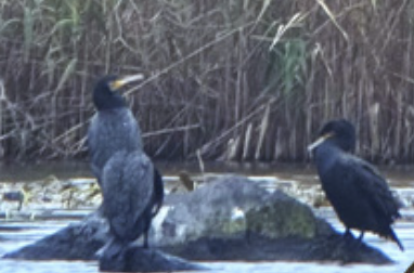바위에 올라가 날개를 말리는 게 특징인 새, 가마우지를 보러 가는 길이에요.