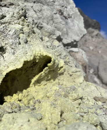 에산의 암석 위에 노란색으로 튀어 나온 부분이 바로 유황 결정이랍니다.