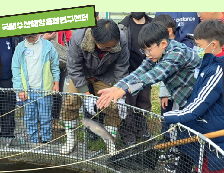 하코다테의 수산 자원을 연구하는 국제수산해양종합연구센터에서 대원들은 브라운 송어를 관찰했어요. 브라운 송어는 1800년대 후반 일본에 들어와 강, 바다에 살고 있습니다.