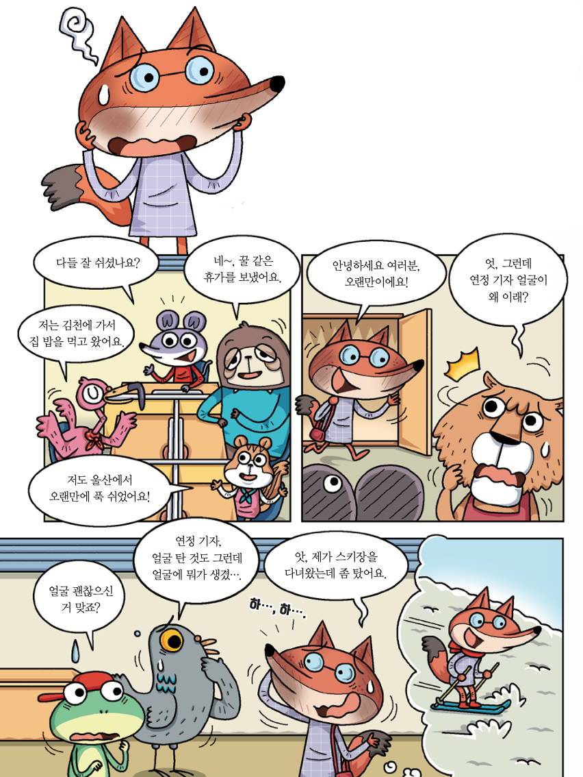 <어린이과학동아> 편집부는 겨울 휴가 이야기로 시끌벅적합니다. 따뜻한 나라로 여행을 다녀왔거나, 집에서 휴식을 취한 팀원들의 이야기를 들을 수 있었죠. 그런데 겨울 휴가를 다녀온 박연정 기자의 얼굴이 어딘가 이상합니다.