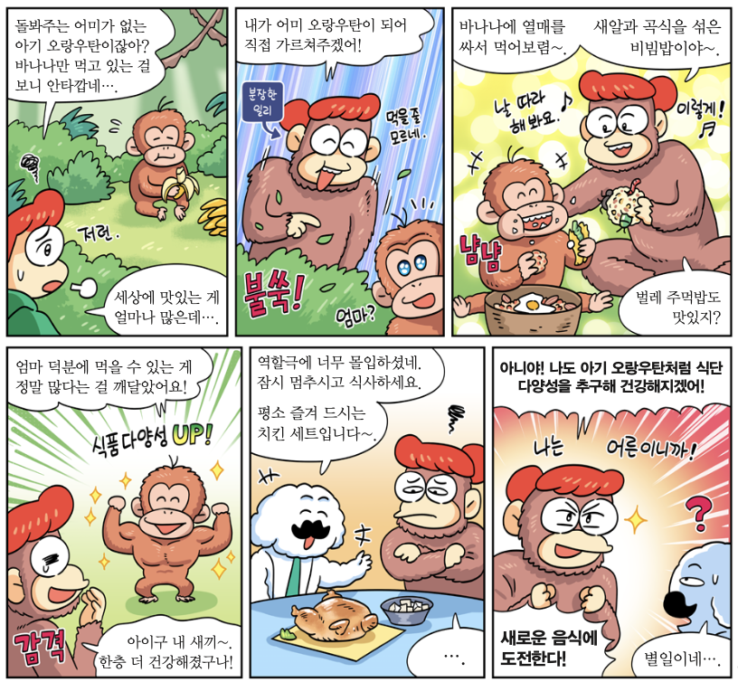 지난해 11월 24일, 독일 막스플랑크 동물행동연구소 외 국제 연구팀은 오랑우탄도 부모의 식단을 보고 배워야 살아남을 수 있다는 연구 결과를 발표했어요. 연구팀은 12년 치 야생 오랑우탄의 행동 데이터를 입력해 컴퓨터 모의실험으로 가상 오랑우탄들을 만들었어요. 아기 오랑우탄이 엄마를 따라다니며 식단을 관찰했을 때는 250마리 중 약 78%가 15세가 되면 혼자 다양한 식단을 짤 수 있었어요. 하지만 혼자서 음식을 찾게 하자 단 한 마리도 어른 오랑우탄 식단의 90% 이상을 따라하지 못했죠. 연구팀은 “야생 동물에게도 배움은 생존의 필수 조건”이라고 설명했어요.