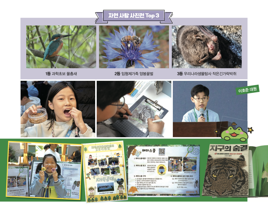 대원들이 촬영한 생물 사진을 감상하고 가장 마음에 드는 사진에 투표하는 ‘자연 발견 사진전’도 열렸어요. 물총새 사진으로 1등을 차지한 과학초보 팀 허동혁 대원은 “물총새의 독특한 털색과 부리가 잘 드러난 사진에 투표해 줘서 고맙다”고 소감을 전했습니다.