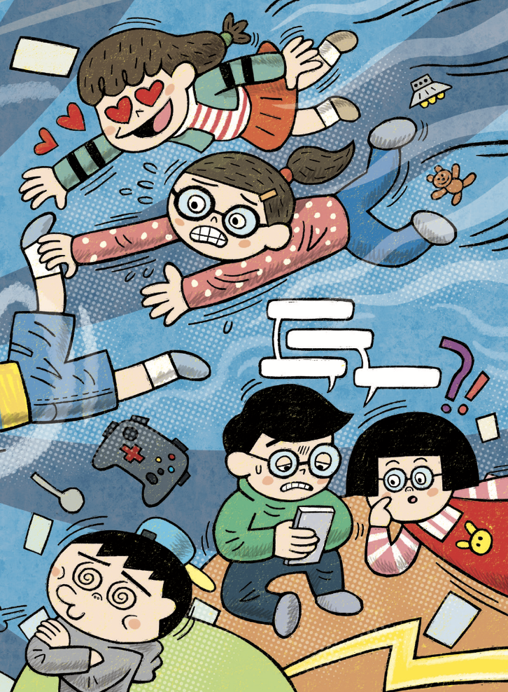 여러분은 인공지능(AI)을 많이 사용하나요? 다양한 AI가 나오면서 숙제하거나 대화를 나눌 때 AI를 쓰는 어린이들이 있어요. 그런데 잘못 사용하면 AI에 중독될 수도 있어요. 그림 속 친구들처럼 말이에요. AI를 똑똑하게 사용하는 법을 알아봐요!
