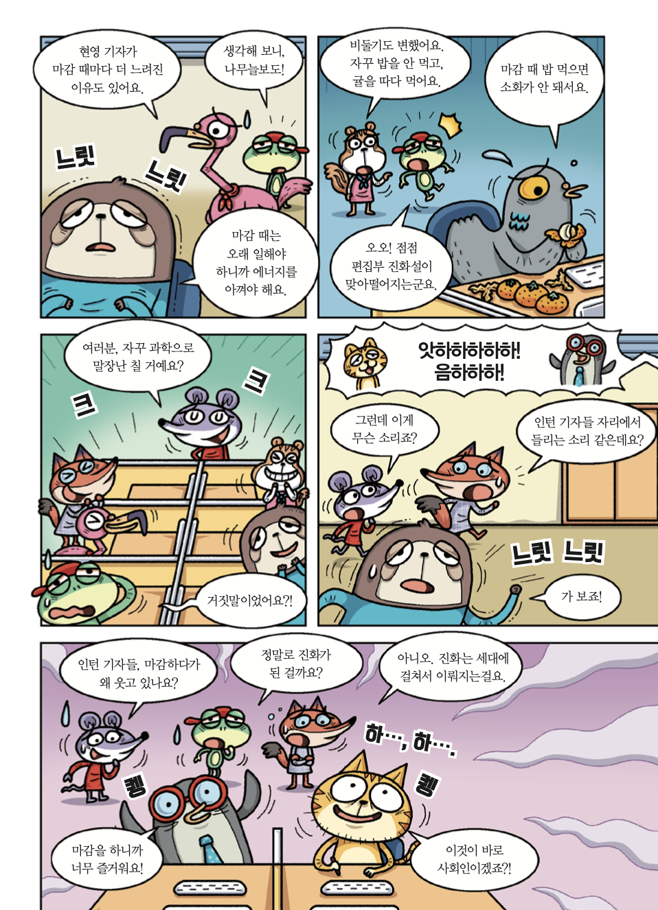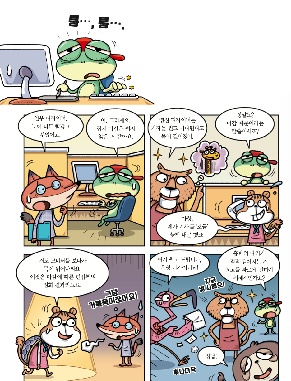 <어린이과학동아> 청개구리 디자이너가 마감하다가 말고, 편집부가 진화하고 있다는 가설을 파헤치기 시작했어요. 진화라니, 도대체 무슨 일일까요?