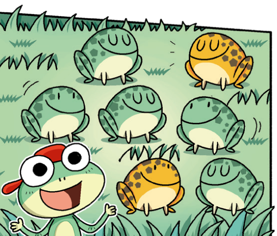 자연선택에 따르면, 같은 종이라도 눈에 잘 띄는 개체는 포식자에게 더 쉽게 발견되고, 눈에 덜 띄는 개체는 살아남을 가능성이 커요. 2011년 캐나다 몬트리올대학교 연구팀은 페루 아마존에서 노란색과 초록색 독화살개구리 모형을 놓고 포식자의 공격 횟수를 조사했어요. 그 결과 노란색 배경이 많은 들판 지역에서는 초록색 개구리가, 숲이나 산지에서는 노란색 개구리가 더 많이 공격을 받았어요. 이는 환경에 따라 살아남는 개구리의 특징이 달라지는 자연선택의 예랍니다.