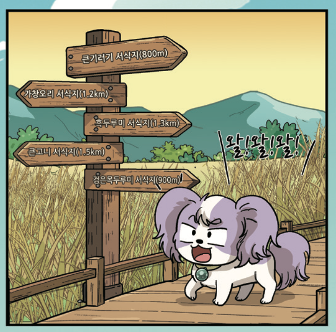 왈왈왈! 곧 나는 이정표 하나를 보며 요란하게 짖어댔다.