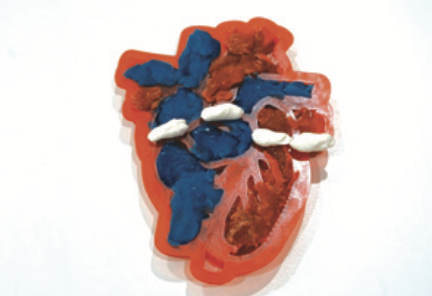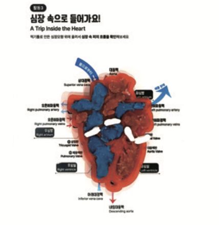 이제 심장 클레이 키트를 만들어 봐요. 클레이를 이용해 심방, 심실, 판막을 표현할 수 있습니다. 투명 활동지에 심장 모형을 올려 구조를 확인해 보세요!