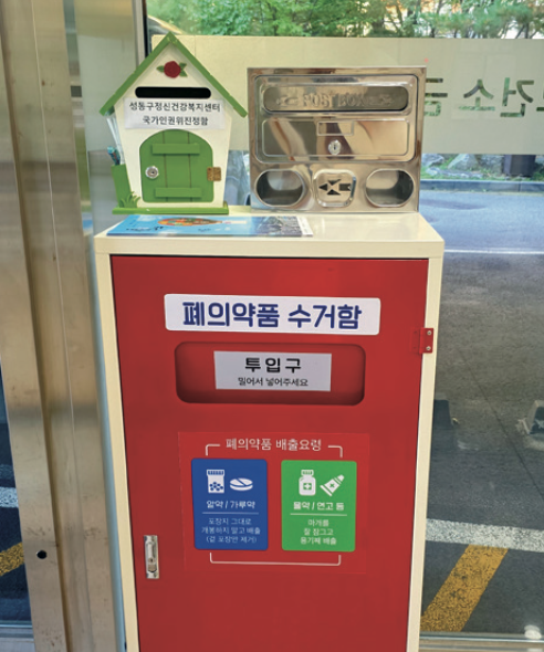 서울 지도 서비스인 ‘스마트서울맵’의 ‘폐의약품 전용 수거함 위치’에 들어가면 폐의약품 수거함을 찾을 수 있어요. 각 지역의 주민센터나 보건소에 문의해도 폐의약품 수거함의 위치를 알 수 있어요. 주민센터에서 나눠주는 폐의약품 전용 회수 봉투에 알약이나 가루약을 담아 밀봉해 우체통에 넣어 처리할 수도 있답니다.