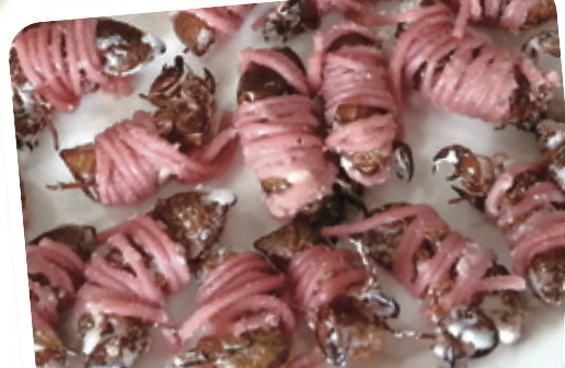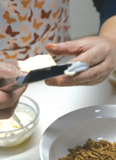깨끗하게, 보기 좋게 만드는 거예요. 저는 곤충을 식초 물로 여러 번 세척해요. 얇은 날개는 삼키다 식도에 붙을 수 있으니 제거해야 하고요. 또 곤충요리에 대한 혐오감을 줄이려면 요리가 예뻐야 해요. 카나페처럼 예쁘게 만들면 좋아요. 보기 좋은 음식이 먹기에도 편하답니다.
