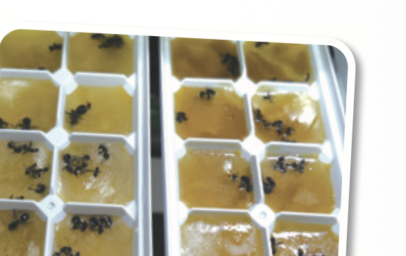 ➌ 냉동실에 보관된 갈색거저리 애벌레, 매미, 개미 등 다양한 식용 곤충.