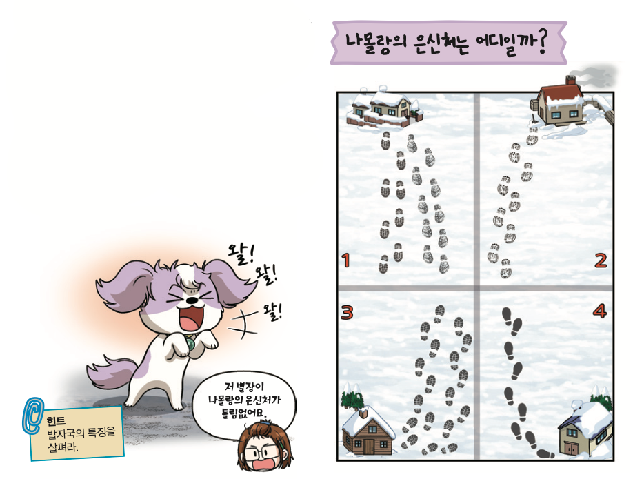 탐정들은 수상한 발자국을 따라 별장으로 갔다.