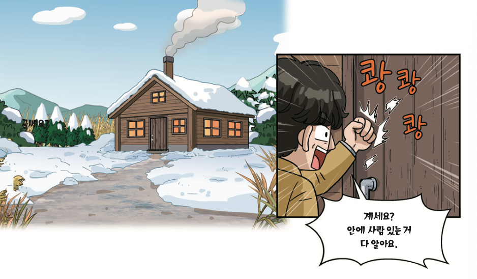 “아냐! 굴뚝에서 연기가 나잖아.”