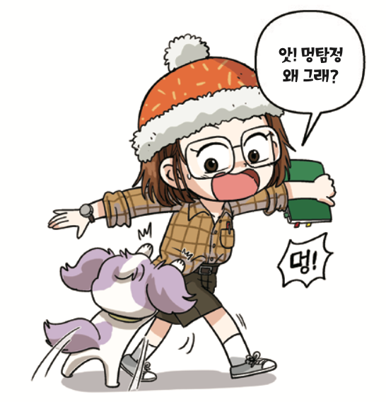 왈왈왈! 나는 이 프로가 움직이지 못하도록 바짓단을 물고 늘어졌다.