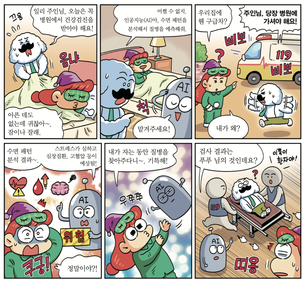 1월 6일 미국 스탠퍼드대학교 연구팀은 하룻밤 수면 데이터만으로 130개 질병을 예측하는 인공지능(AI) 모델 ‘SleepFM’을 개발했다고 국제 학술지 ‘네이처 메디슨’에 밝혔어요. 연구팀은 의료기관 네 곳의 수면다원검사 데이터로 AI 모델을 훈련했어요. 수면다원검사는 수면 중 뇌와 심장의 미세한 전기 신호, 호흡, 근육 활동 등을 측정하는 검사예요. 약 6만 5000명의 수면 데이터를 분석한 이 모델은 84%에 가까운 정확도로 사망 확률이 더 높은 환자를 맞혔어요. 연구팀은 “간단하고 비용이 적게 드는 수면 검사로 신경계 질환을 예방할 수 있을 것”이라고 밝혔어요.