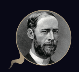 1857년 2월 22일 태어난 헤르츠는 물리학을 전공한 뒤 맥스웰의 이론을 실험할 방법을 오랫동안 고민했어요. 1886년, 헤르츠는 금속을 감아 만든 두 개의 고리를 연결하지 않은 채로 두고 한쪽 고리에 강한 전기를 보냈어요. 그러자 다른 고리에서도 작은 불꽃이 튀었죠. 헤르츠는 전선 없이도 공간을 가로질러서 일어난 이 반응을 보며 맥스웰의 이론을 증명할 수 있겠다고 생각했어요. 이후 수 m씩 떨어진 금속 반사판 등을 장치로 써서 전자기파의 존재를 증명하는 데 성공했죠.