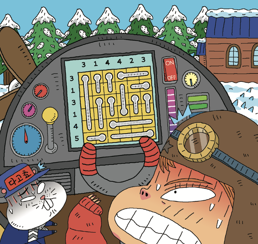 라라올라는 수리를 말끔하게 마친 비행기에 올라 계기판을 바라보았다. 라라올라가 한 버튼을 누르자, 복잡한 선들이 떠올랐다.